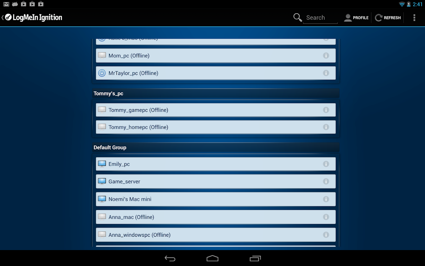 You will need to create an account at LogMeIn.com and your new account includes a complimentary 30-day trial of LogMeIn Pro to use the file transfer, remote printing, remote sound and other premium features via web browsers on your desktop. Some premium features in LogMeIn Ignition for Android, such as remote sound, require LogMeIn Pro. Even after the Pro trial expires, you can keeping using Ignition and it’ll automatically work with LogMeIn Free. No changes are required on your part. With LogMeIn Free, you get unlimited remote control from your desktop or Android device.