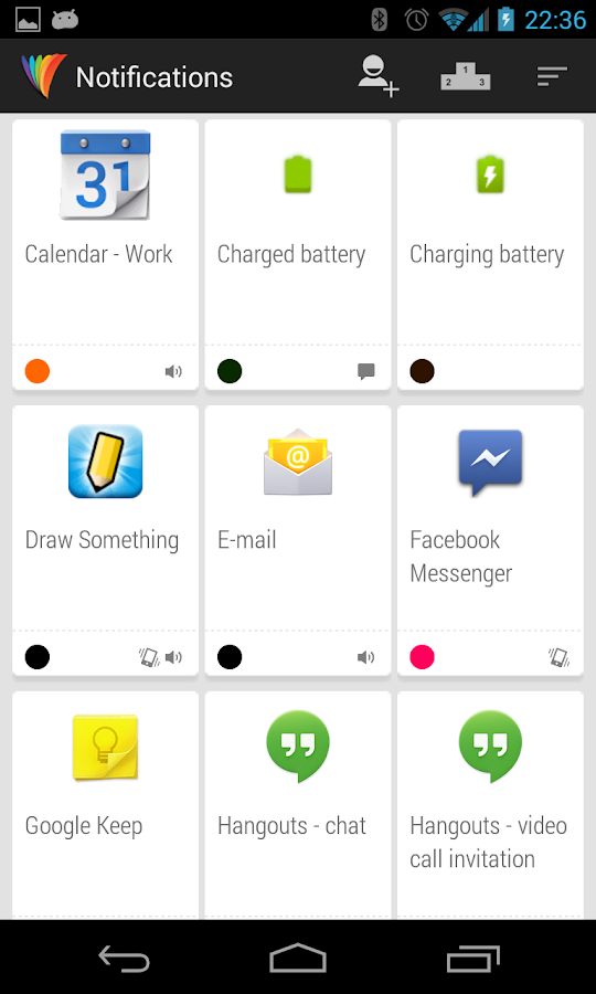 It also allows you to set repeating sounds on vibration patterns for you notifications. You can also set a "sleep time" or "on charge" where the lights and/or sounds and vibrations will not be heard or seen.