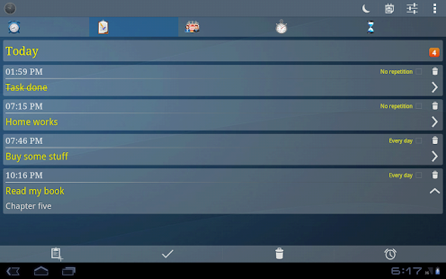 Warning do not stop the application with a task killer, because it deletes all your alarms and notifications.