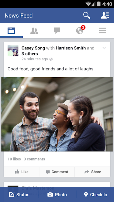 Overview: Share and stay connected with your friends with the Facebook for Android app.